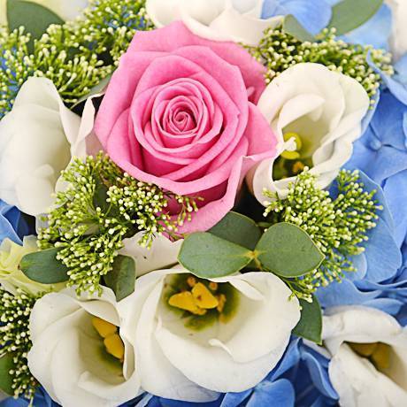 Гортензия - 2 шт, Эустома - 3 шт, Бувардия - 7 шт, Орнитогалум - 3 шт, Драцена - 5 шт