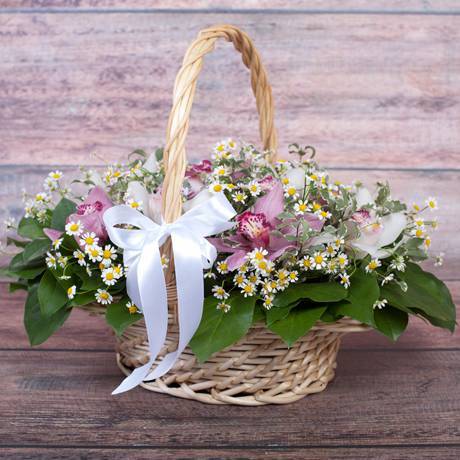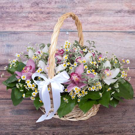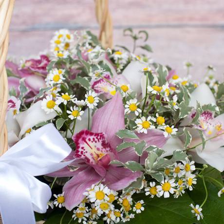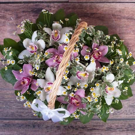Корзина «Орхидеи и ромашки» (средняя)